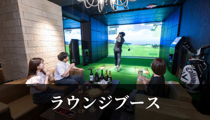 ラウンジブースはゴルフバーをイメージして頂ければ分かる方も多いと思われます。通常1部屋最大6名様の個室をご用意しております。VIPルームは12名様までご利用できます。本格的なパスタやピザ、唐揚げや豊富なドリンクもございますので、コンペや歓送迎会に是非ご活用ください。