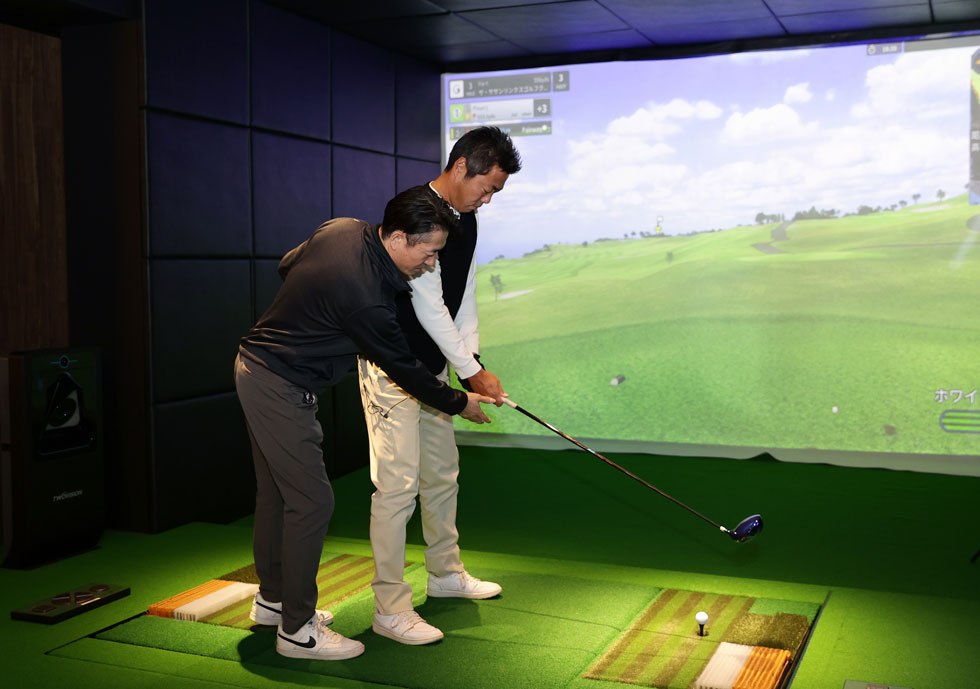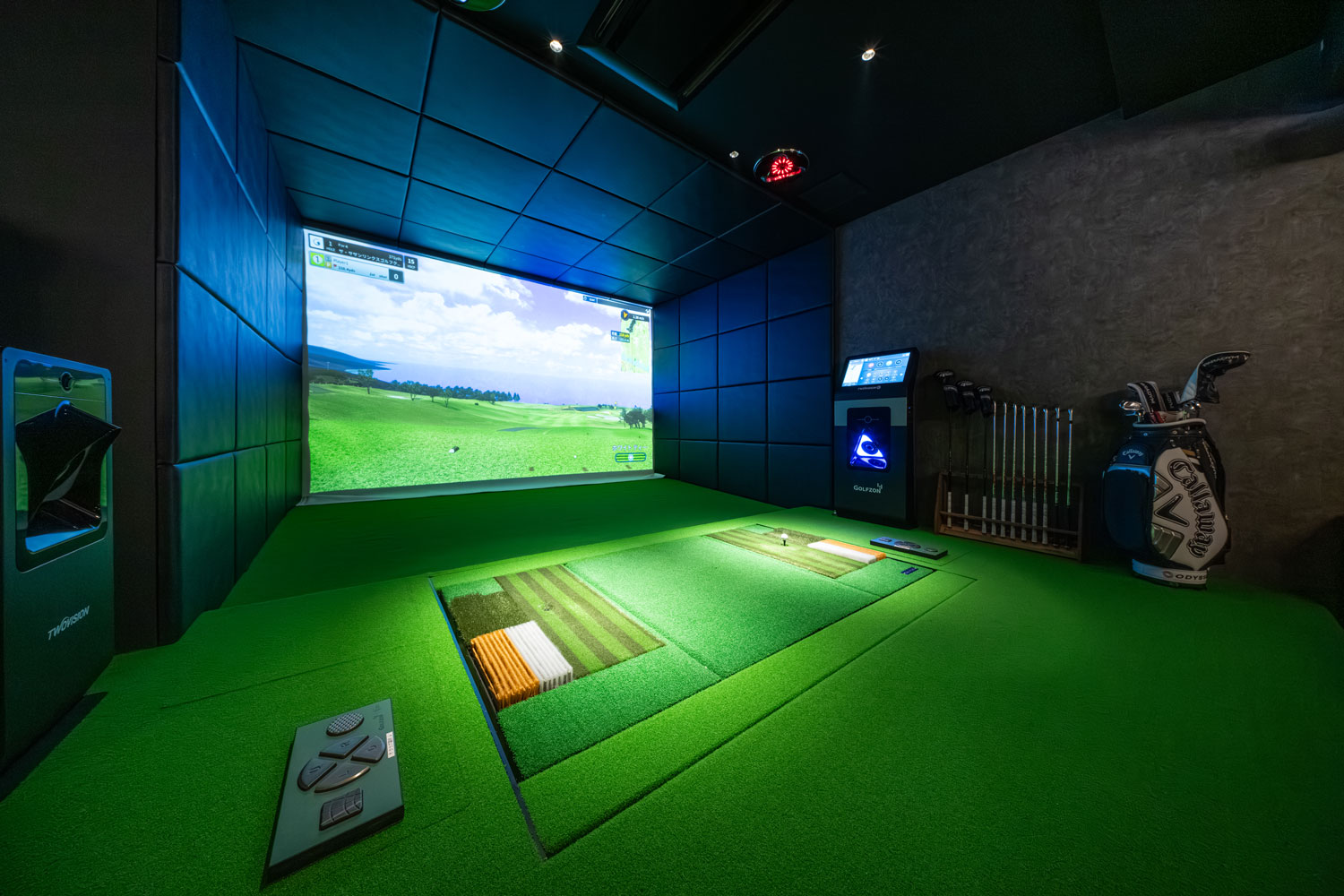 ザイセルフでは「TWOVISION Plus」を採用。オートティーアップ機能と250以上の名門コースを体験できます。